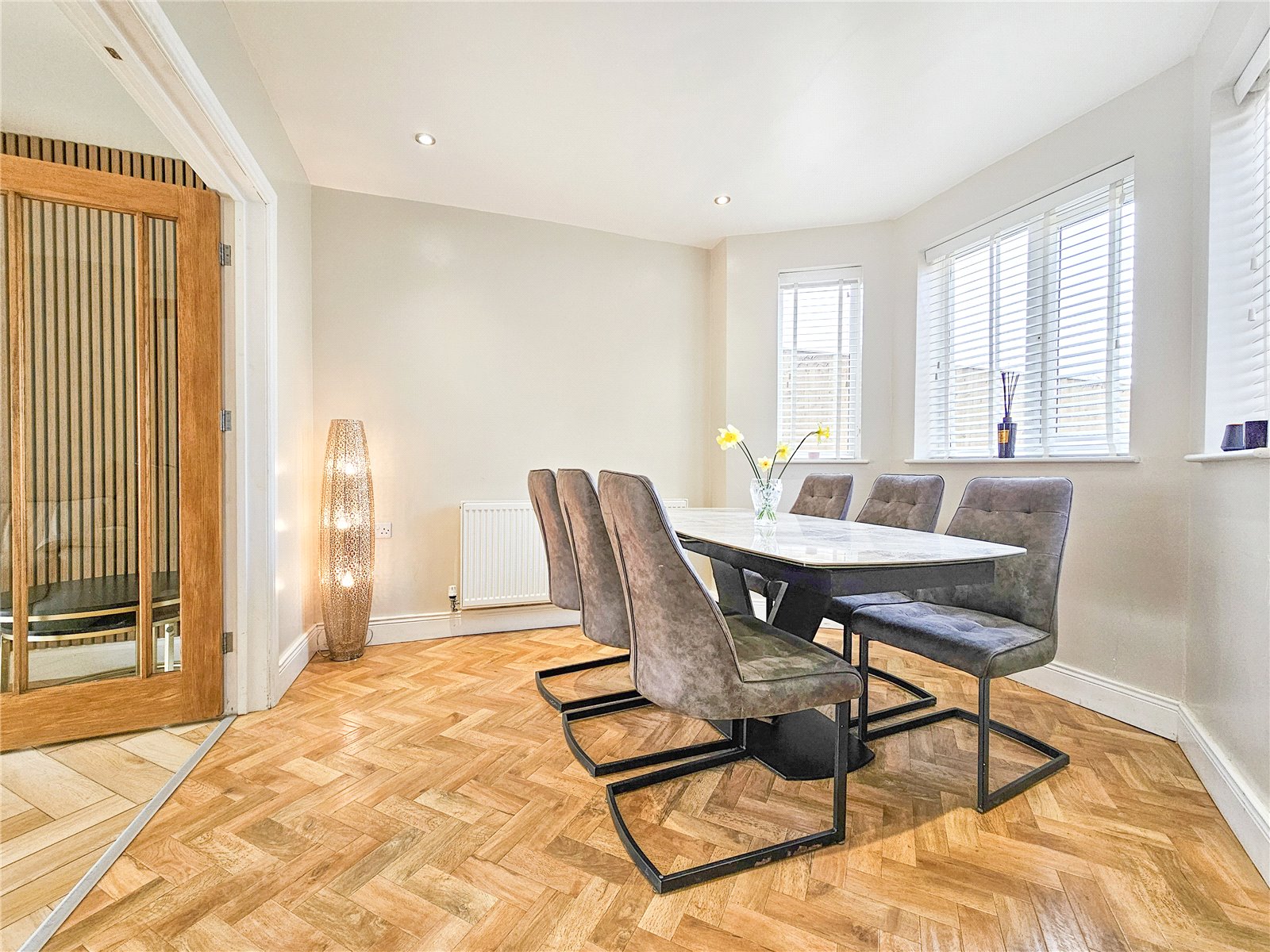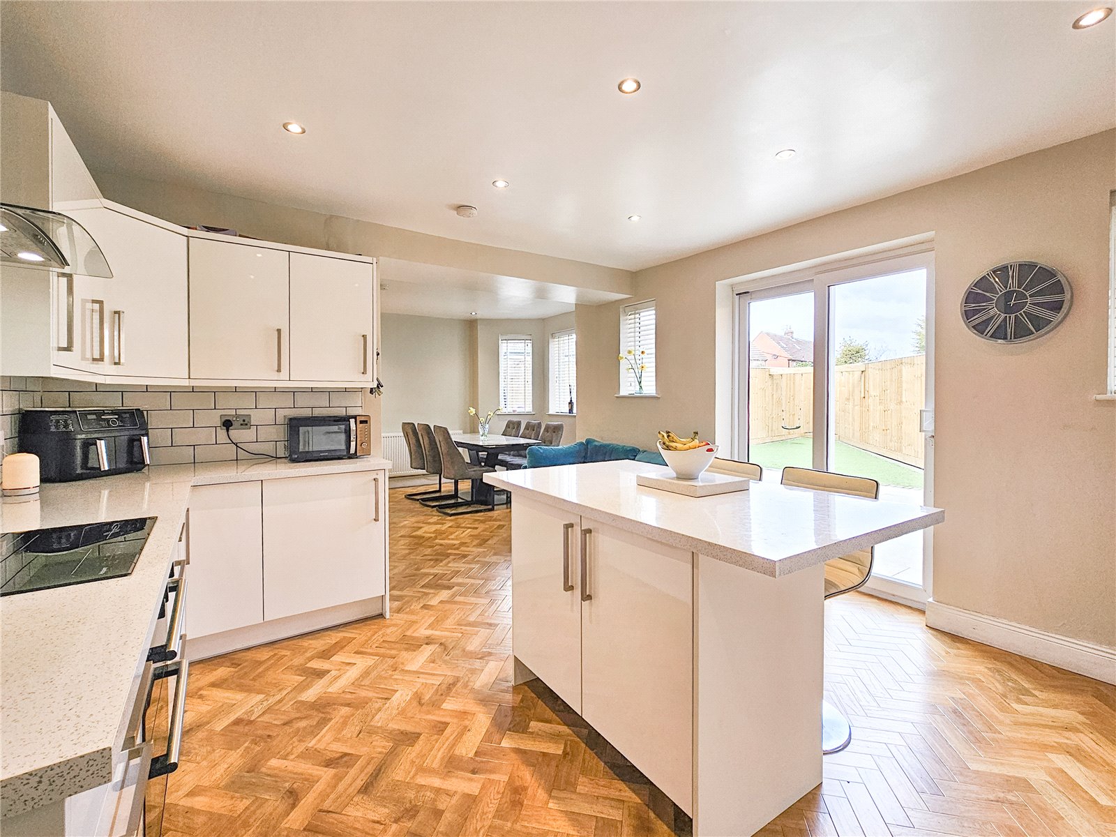 The heart of the home is the impressive open-plan kitchen and dining area, designed with both everyday living and entertaining in mind. Featuring a contemporary fitted kitchen with island and ample workspace, this bright and sociable space flows seamlessly into the dining area and garden, creating a fantastic hub for family life.