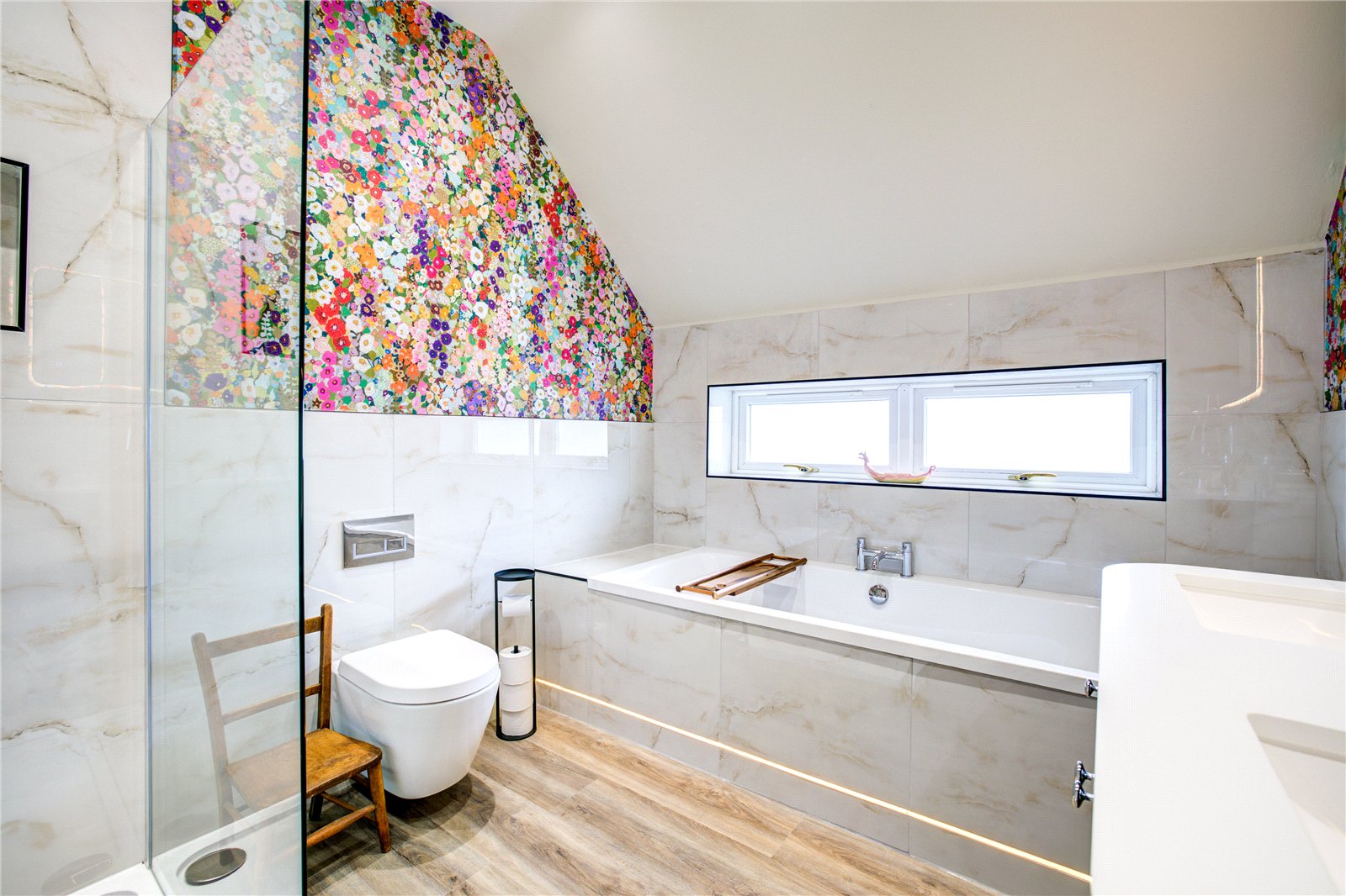 Upstairs, the principal bedroom offers a luxurious retreat, featuring a walk-in wardrobe and stylish en-suite bathroom. Three further double bedrooms are generously sized, with two benefitting from en-suite shower rooms, and a separate, beautifully appointed, family bathroom completing the first floor.
