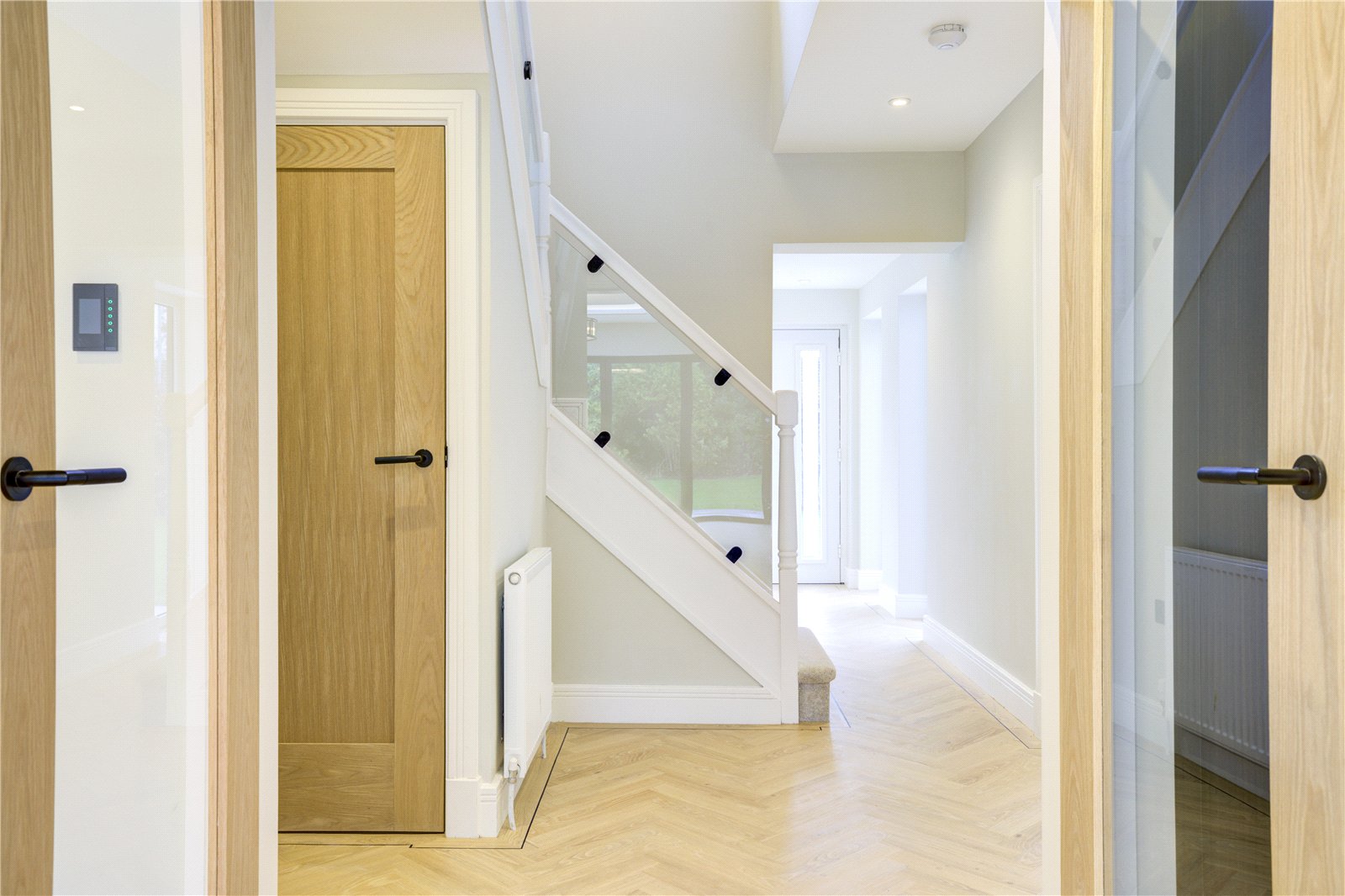 - Welcoming entrance hallway with stylish ground-floor WC and feature glass staircase