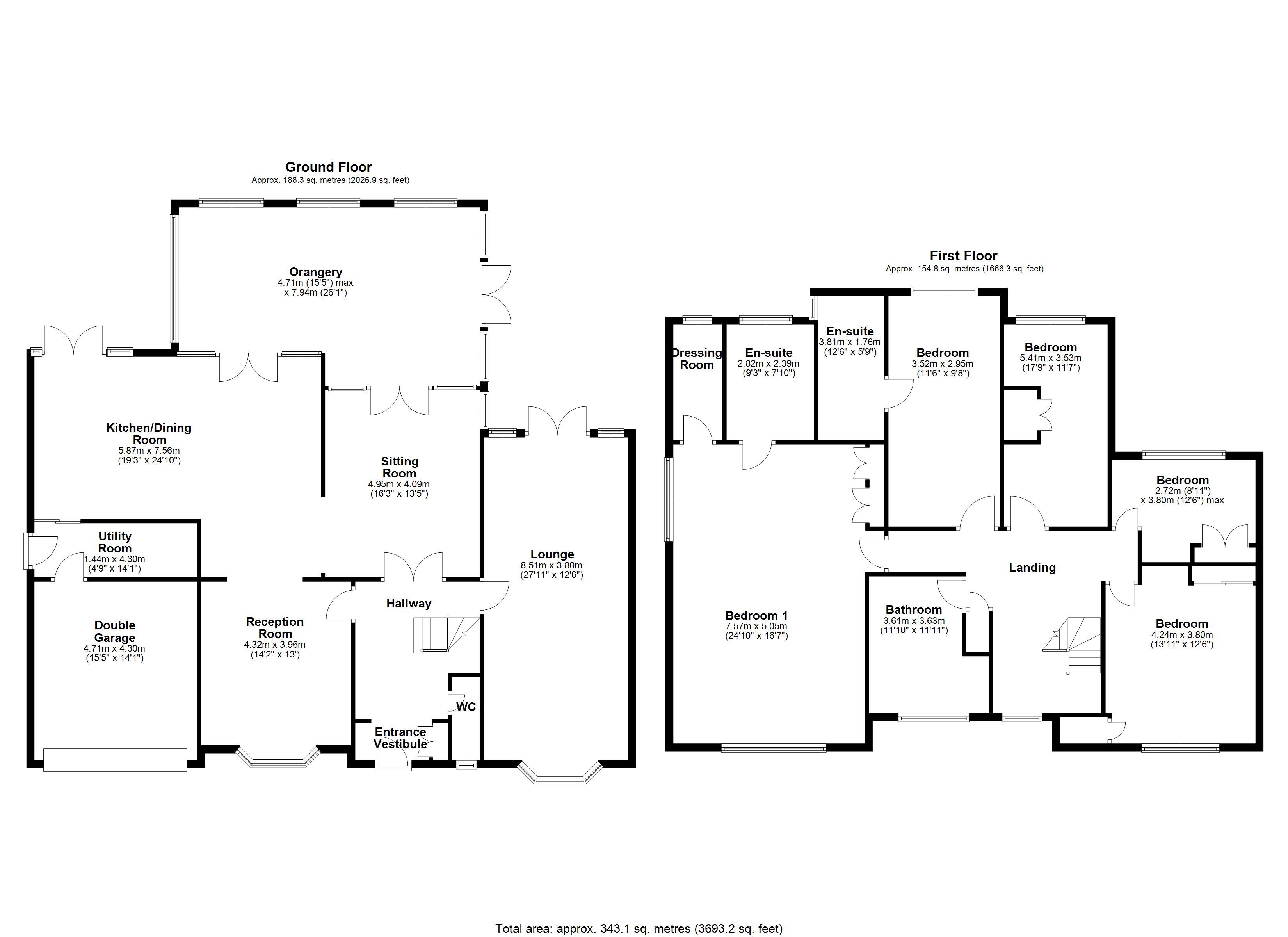 - Second bedroom with en-suite plus three further well-proportioned bedrooms