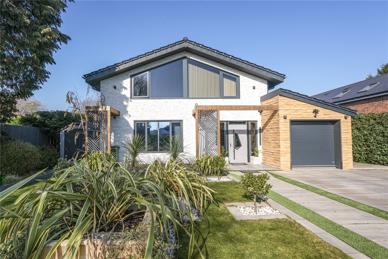 Externally, the property continues to impress with a landscaped garden designed for both visual appeal and ease of maintenance. A garage and gated driveway provide secure parking and additional storage, completing this superb home.